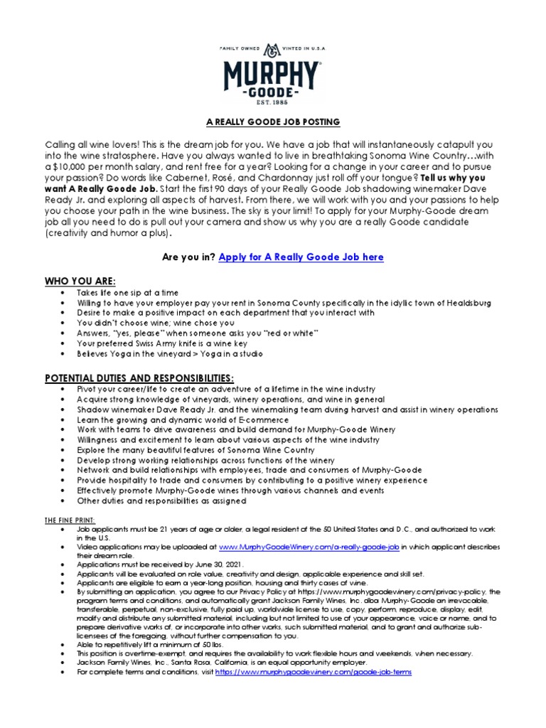Harvest Intern Kings River Winery Job Description Winery Worker Job Description Web get free winery worker job description templates based on analyzing thousands of winery worker job descriptions to identify. These are the individuals who oversee the entire winemaking process. Web vineyard workers usually work in a team led by a vineyard supervisor. Web a winery worker is responsible for various tasks in a winery, including operating production equipment, maintaining safety.. Winery Worker Job Description.